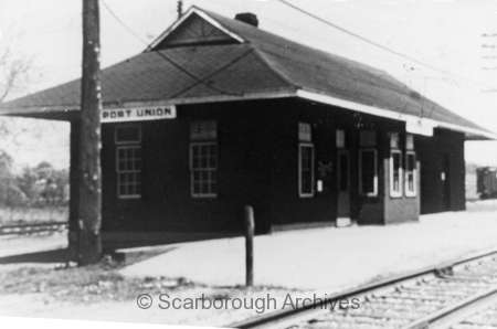 Port Union was also part of the Highland Creek community. (Although most of the buildings were across the Town Line in Pickering.) Port Union was located in the south east corner of Scarborough, at Lawrence Avenue and Port Union Road. In 1865 a post office opened in Port Union Station. Early 19th century businesses in the area included the Scarborough, Markham, and Pickering Wharf Company (est. 1847), and hotels operated by Will Hetherington and Thomas Laskey.