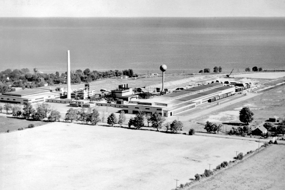 In May 1948, big industry came to Port Union on the historic Dixon farm land. For a relatively poor township, this was good news at the time. The company employed 350 people and created much needed tax dollars. When people complained of the linseed oil smell from the rock wool manufacturing process, a new 200 foot poured concrete smoke stack was built in 1949 to replace the 50 foot metal one. At the time, environment protection was a concern to Johns-Manville. The one million gallons of water used daily in manufacturing was returned to the lake purer than when they took it in. What Johns-Manville did was environmentally acceptable and within the limits of the legislation at the time they conducted their operations. They also exceeded government standards due to sophisticated emission and dust control procedures.